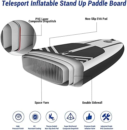 [High Quality SUP PaddleBoard ] Military-grade PVC With Drop-stitch Fibers Connected to Indestructible Outer Skin, Plus Skid Resistance Dual Layer of EVA Foam Deck Pad.