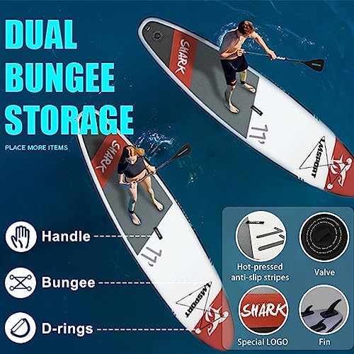 💙【Stable&Extra Long】The inflatable paddle board 11 ft is an all-around board suitable for all skill levels.Extra long 11 feet and 6 inches thick makes the paddle board more stable,and it is easy for beginners to stand up and balance on the SUP board;30 inches wide,riders can also experience thrill and fun,perfect for using oceans,lakes and rivers.