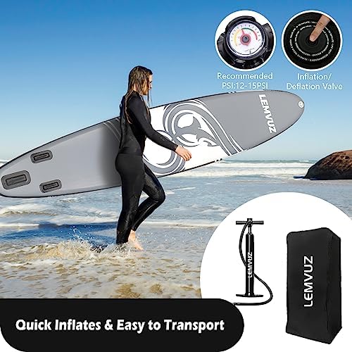 💙【Complete Paddleboard Kit&24h Service】All professional accessories:safety leash,hand pump,3 removable fins, length-adjustable strong paddle,high quality storage bag.Three detachable bottom fins help improve overall speed and handling.Hand pump can be easily inflated and deflated.LEMVUZ offers a 1-year guarantee for your order,if any questions,please feel free to contact us.