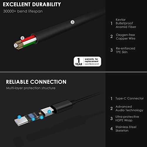 [Ergonomic Durable Design] EarFlow earbuds include reinforced TPE cable coating, oxygen-free copper wire for superior data transmission, and a stainless steel frame to safeguard the Type C connection.