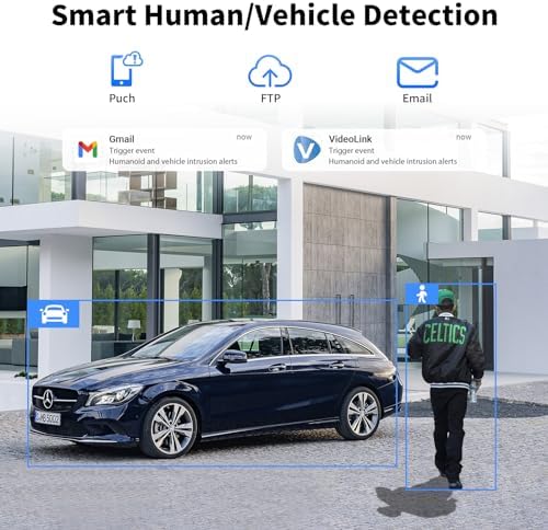 【Smart Human/Vehicle Detection】This ultra hd 4k poe bullet camera featured advanced person/vehicle detection based on cutting-edge detection algorithms helps identify real threats, can be reduce false alarms. When person enters the video area, the camera will automatically detect and send the real-time video/snapshot to your mobile phone. It can also specify the type of detection when sending motion alerts to you. You can know what happened by just glancing at the phone screen.