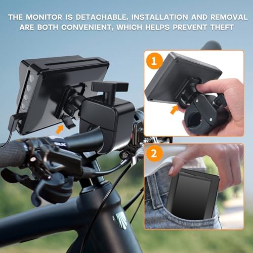 PARKVISION Bicycle Rear View Camera with Anti-Glare Sunshade -4.3”Waterproof HD 1080P Monitor with Auto Dim -8000mah Rechargeable Battery -3 Mins Installation Bike Camera for Mountain Ebike