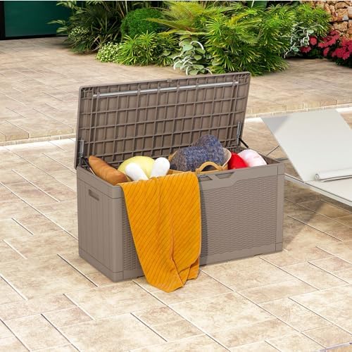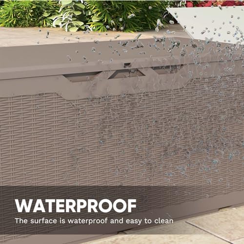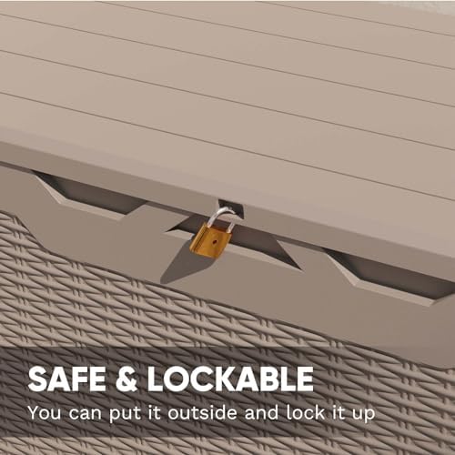 Patiowell 100 Gallon Outdoor Resin Deck Box, Waterproof Large Storage Box for Patio Furniture, Pool Accessories, Toys, Garden Tools and Sports Equipment, Lockable, Light Brown