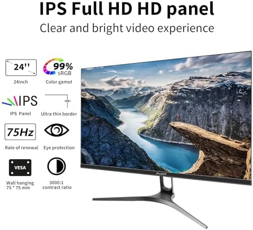 【Full HD Computer Monitor】Jhcztrk 24-inch Slim Narrow Gaming Monitor Featuring LED, IPS and 1080P FHD resolution 178° viewing angles and a 75Hz refresh rate, this stylish monitor is narrow and wide on three sides so the screen looks bigger. This minimalist design also allows for seamless multi-monitor setups to enhance workflow and increase productivity.