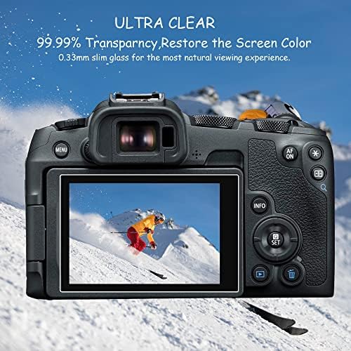 High-quality material and only 0.3mm thickness but with 9H hardness, the screen protector has a higher hardness. Protect the camera screen from high-impact drops, scratches, scratches, and collisions with keys and knives.Silicone adhesive coating: No glue residue when removed.