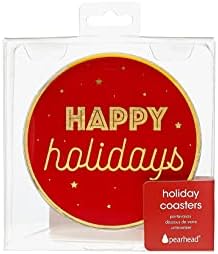 Pearhead Holiday Christmas Drink Coasters, Green and Red Festive Party Coasters, Holiday Home Decorations, Christmas Holiday Coasters, Set of 4