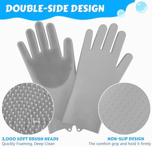 🐾【 2-in-1 Design】: Our silicone cat bathing gloves large combine a cleaning brush and glove, so the bathing process will become as simple and convenient as petting pets. With a hanging hole at the end of pet grooming gloves, you could hang it up with the hook in any place you want to save space.