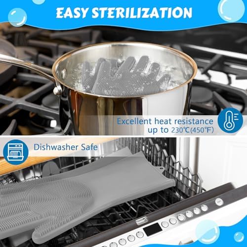 🐾 【Eco-friendly Silicone & Heat Resistant】: Made of high-quality silicone, it is non-toxic, high-toughness, and has good elasticity. Excellent heat resistance up to 450°F, so the cat washing gloves can be sterilized with boiling water while having a pet bathing. Never worry about getting scalded.