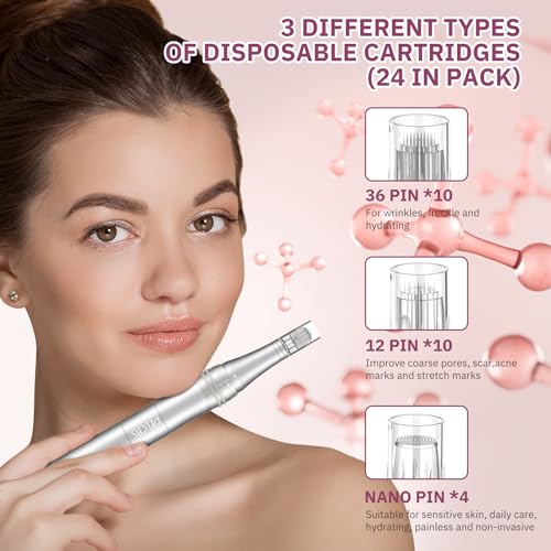 PELCAS Electric Beauty Pen Kit Professional Skincare Pen for Face & Body, Cordless Skin Care Tool at-Home with 24Pcs Replacement Cartridges