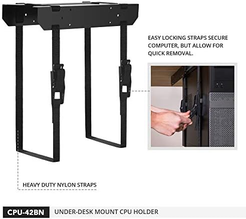 Penn Elcom Under-Desk Computer Mount, Adjustable Straps Fit up to 71 Inches – PC Tower Holder