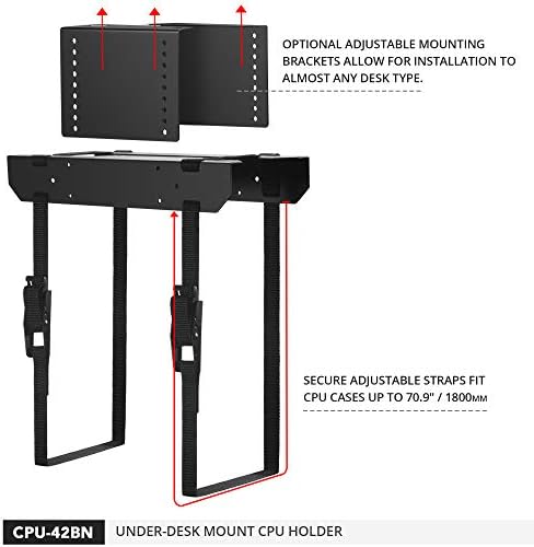 THE PERFECT FIT: This computer mount comes with heavy-duty adjustable straps that will hold most standard CPU cases up to 71” inches safely and securely. The brackets measure 13.54 inches in length and are 8.03 inches apart from the outside.