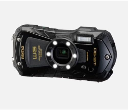 Pentax WG-90 Digital Camera (Black) Features: Zoom-compact digital-still camera, Approx. 28 – 140mm (35mm format equivalent), 11 elements in 9 groups (5 aspherical elements) + More