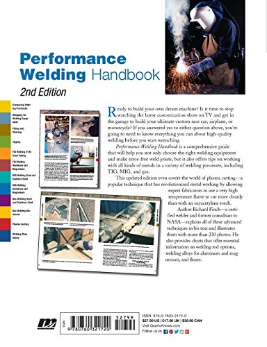 Richard Finch. Metal fabricators of every ilk, whether they’re working on race cars, experimental aircraft, or custom motorcycles, will benefit from this updated guide to top-quality welding. Performance Welding demonstrates the newest fabricating techniques and covers the latest in welding equipment. This complete guide written by NASA welding consultant Richard Finch helps a fabricator select the proper equipment, prepare jigs, and effectively weld 4130 steel, stainless steel, aluminum, and magnesium. It also covers plasma cutting, the technique used extensively on Monster Garage that has revolutionized metal working. 2nd ed.