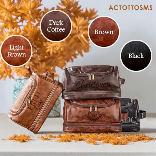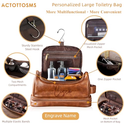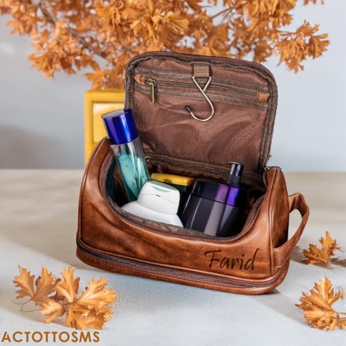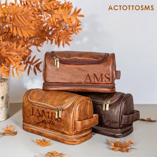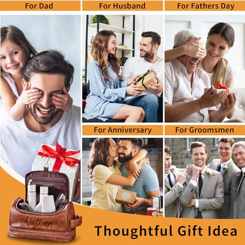 Personalized Leather Toiletry Bag for Men, Engrave Name, Customized Large Travel Toiletries Bag, Water Resistant, Groomsmen Gifts, Handmade Gifts for Men Dad Husband Christmas Birthday Anniversary