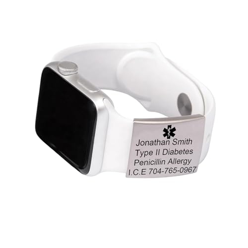 Personalized Medical Alert Watch Sleeve – Medical Alert Watch Band – Medical Alert Watch Charm – Medical Alert ID Tag – Compatible for Smart Watch Bands 45mm 44mm 42mm 41mm 40mm 38mm