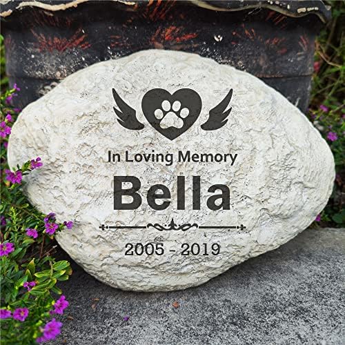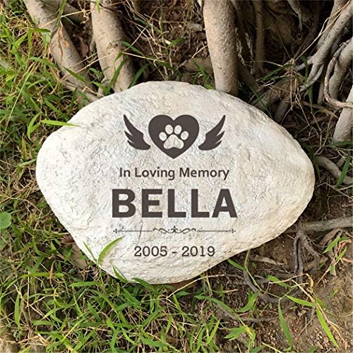 Product design: The pet memorial stone is carved with big paw prints,looks warm and lovely.Perfect for pet grave markers,suitable for dogs and cats. Personalized: Free custom on the pet memorialstone directly, including your pet’s name,born passed dates.