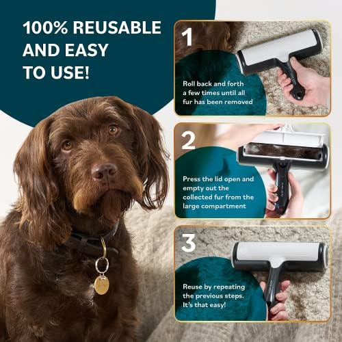 No More Wasteful Lint Rollers – Our reusable dog hair remover is the perfect alternative to disposable rollers that easily lose grip and break. Simply roll back and forth to trap hair in the compartment, empty it, and repeat! No more wasting money on batteries or adhesive refills.