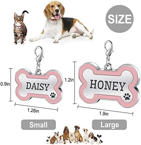 Pet ID Tags,Personalized Dog Tags and Cat Tags,Engraved Both Sides Bone Shape Collar Pendant Custom Pet Supplies Engrave Name Number Gift for Cats Puppies Tags(S Pink)