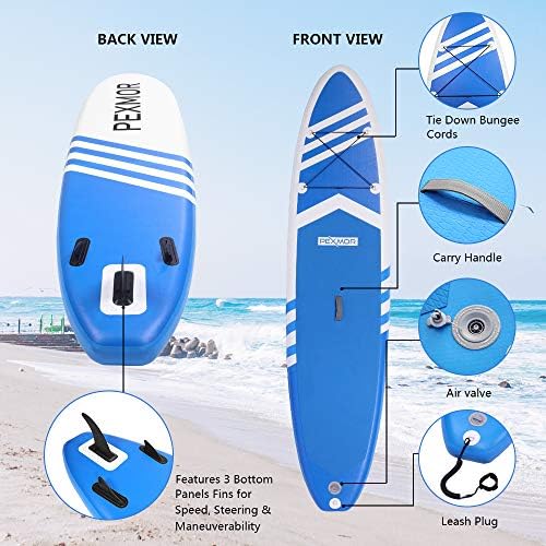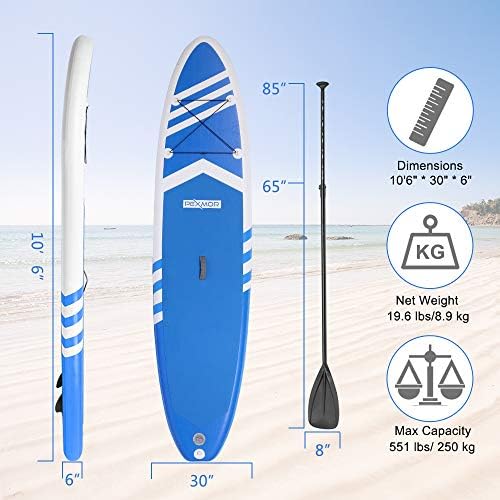 PEXMOR Inflatable SUP 10’6″×32″×6″ Ultra-Light (19.6lbs) for All Skill Levels Stand Up Paddle Board with Adustable Paddle, Hand Pump with PSI Gauge, ISUP Travel Backpack, Leash, Repair Kit