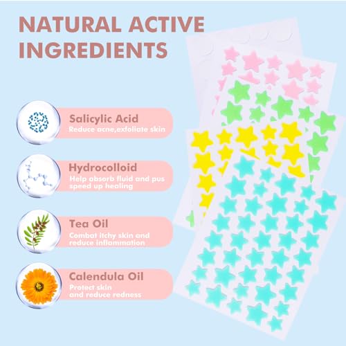 Pimple Patches for Face 412pcs,Hydrocolloid Acne Patches Star,Zit Patches,Pimple Popper Tool Kit,Facial Skin Care Products Containing Salicylic Acid,Tea Tree Oil and Calendula Oil(412)