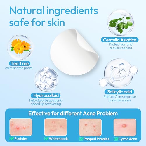 🌿【Acne Patches with Natural Ingredients 】Our Zit Patches which includes tea tree oil(calming, soothing, and pore-tightening), salicylic acid(penetrating pores and helping to clear up skin), Centella(Faster for acne healing & reduce inflammation), and hydrocolloid(Promote clear-looking skin). These acne patches for face are ideal for absorbing pus from acne, whiteheads. Speed up the acne elimination process