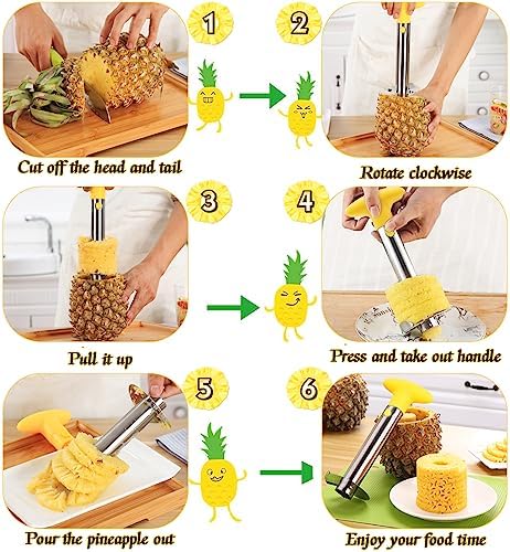 Pineapple Corer and Slicer Tool, Stainless Steel Pineapple Core Remover Tool, Stainless Steel Pineapple Cutter for Home Kitchen with Sharp Blade for Diced Fruit Rings(Yellow)