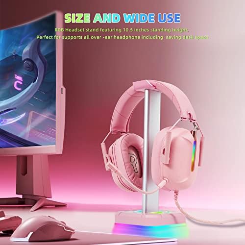 SIZE AND WIDE USE: RGB Headset stand featuring 10.5 inches standing height, Perfect for supports all size headphones including Bose, Beats, Sony, Panasonic, AKG, JBL, Audio-Technica, Sennheiser, Shure and more.Great PC headset holder for your headphone and saving desk space.
