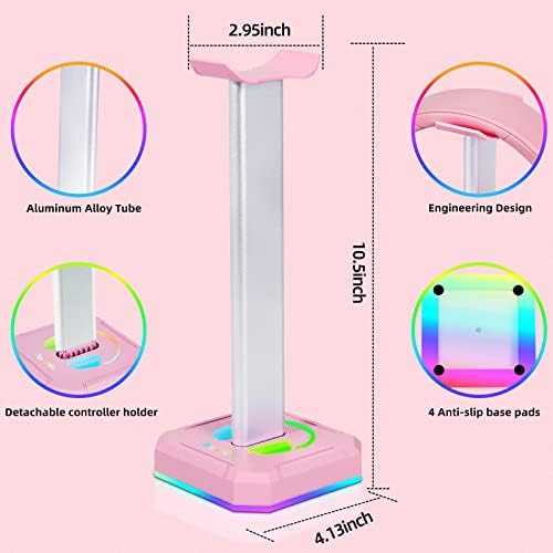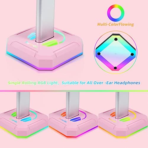 RGB BACKLIT LIGHT:A Rare Pink Headphone Stand on the Market,Compared with the basic black headphone stand,The surface light is added.RGB rolling subtitles light make it look very cool and Suitable for Most Headphone.God said, “Let there be light,” and there was light.【NOTE:This item without headphones】