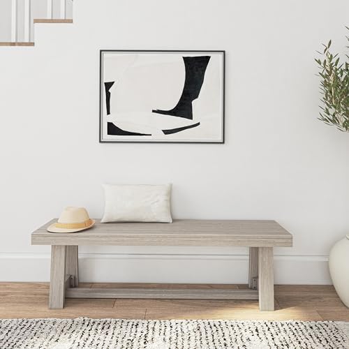 Plank+Beam 60 Inch Farmhouse Dining Bench, Solid Wood Entryway Bench, Wooden Outdoor Bench, Kitchen Dining Seat, Dining Room, Home Office, Living Room Furniture, Easy Assembly, Seashell Wirebrush