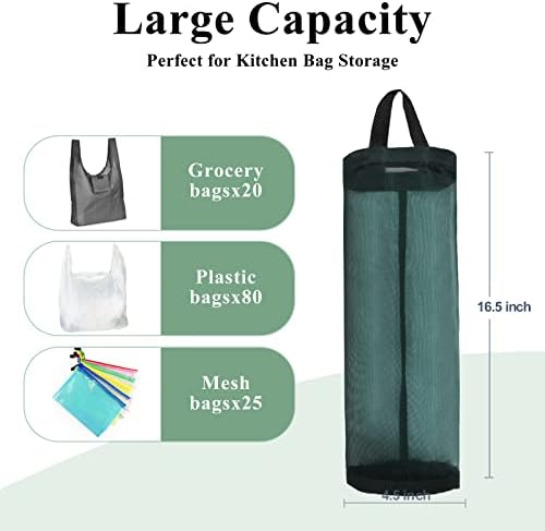 Plastic Bag Holder, Mesh Grocery Bag Holder Hanging Storage Bag Dispenser (Dark Green 2 Packs)