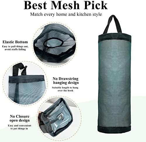 BREATHABLE MATERIAL. TOGETRUE Plastic bag dispenser is made of sturdy polyester mesh, which can see things inside at a glance and hold plastic bags tightly. Also we design our plastic bag holders for grocery bags with breathable mesh fabric, which can keep vegetable and fruit long-lasting.