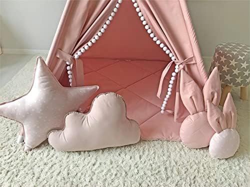 Play Tent Foldable Cotton Canvas Kids Teepee Tent with White Pom Pom Indoor Tipi Play Tent for Children Grils Playhouse with Carry Bag Without Mat