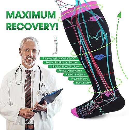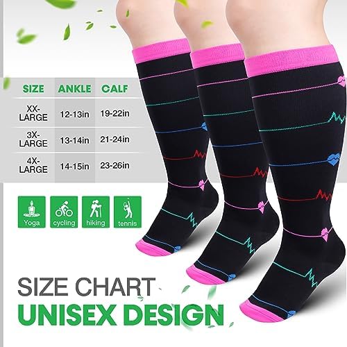 Plus Size Compression Socks for Women & Men, Extra Wide Calf Knee High Stockings for Circulation Support
