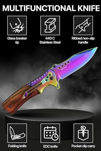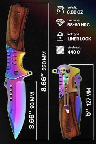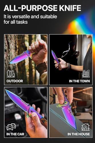 Pocket Knife – Rainbow Folding Knives – EDC Jack Knives – Best Camping Hunting Hiking Knife – Travel Accessories Gear – Gifts for Men Women 0207 R
