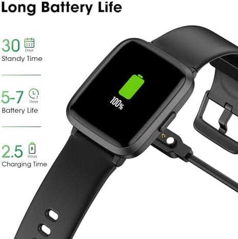 【50m Waterproof Fitness Watch & Battery Life】With a 50m waterproof rating, this smartwatch allows you to enjoy water sports without worry. Combining large capacity and low power consumption, a single charge provides up to 7 days of regular use and an impressive standby time of 30 days, ensuring reliability and convenience.