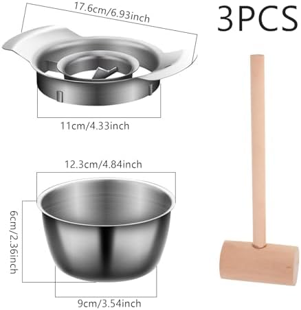 Pomegranate Peeler Stainless Steel Pomegranate Deseeder with 4.8×2.4 inch Bowl and Wood Hammer Pomegranate Seeder Pomegranate Arils Removal Tool Non-Slip Pomegranate Seed Remover for Home Kitchen