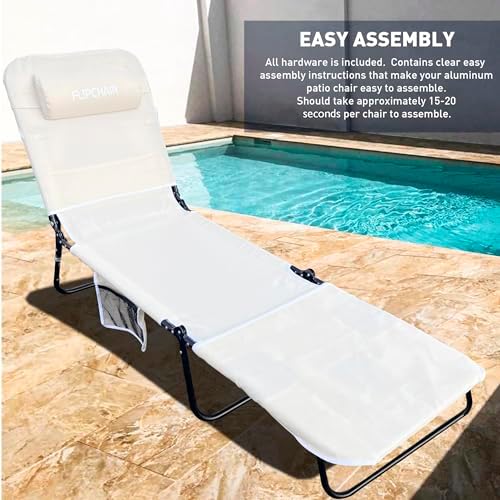 STRONG FRAME – Unlike other lounge chairs our backrest system does not collapse into itself when sitting in middle of chair. No other chair is stronger and more comfortable than the Flip Chair. Made from only the best metal, fittings and fabric. Polyester fabric is great UV resistant Chair can be used as beach chair, lounge chair and flat position.