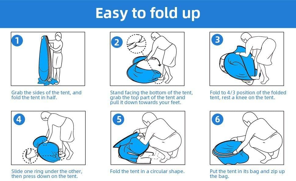 【Durable Construction】Our pop up tent constructed out of high-quality polyester fabric for waterproof and long-lasting performance. The frame is made of Memory Wire which is not easy to break and protect against corrosion. Besides, compared with other brands, the bottom of the back of our tents are higher which can prevent sand and dust into the tent.