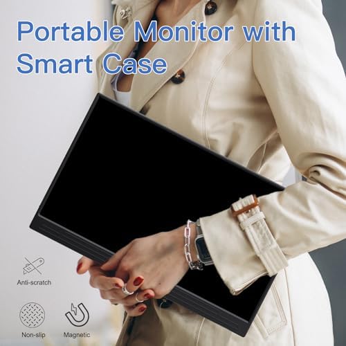 2 in 1 Smart Cover – Made of high quality PU leather material, the cover features scratch-resistant, waterproof, non-slip and durable. Can be magnetically attached to the back of the portable computer monitor folded up as a stand to use, two angles can be adjusted, or lay flat to cover the screen for protection.
