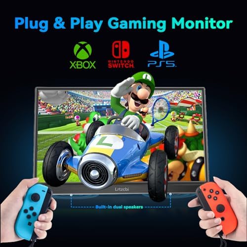 [Plug and Play] – Lrtzcbi portable monitor for laptop equipped with 2 USB Type-C ports and Standard-HDMI port, easy access to your favorite devices with 1 cable solution, compatible with most laptop/Type-C 3.1 smartphone/ PC/ Win OS /PS4/PS5 XBX ONE/ Nintendo Switch etc