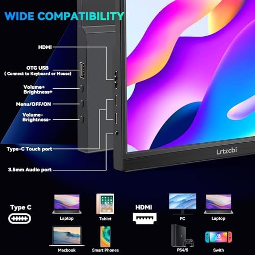 [Visual Experience] Lrtzcbi 15.6 inch HDR Touchscreen Portable Monitor using IPS screen with 1920×1080 native resolution , 16:9 (4:3) aspect ratio, 300cd/m2 brightness, 1000:1 Contrast Ratio,60Hz refresh rate The portable monitor delivers good visual experience.