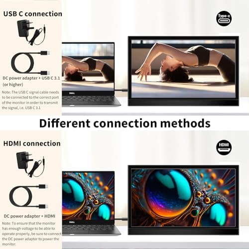 【Extensive Compatibility】Akntzcs 17.3 inch usbc portable monitor for laptop with one USB Type-C 3.1 port(for signal input), one USB 2.0 Type C port(connect mouse keyboard), one standard HDMI port and 3.5mm headphone jack, easily achieves high-definition transmission of audio video signals from various devices. Widely compatible with your PC, computer, laptop, Type-C 3.1 version smartphones, PS5, PS4, or Switch, etc.