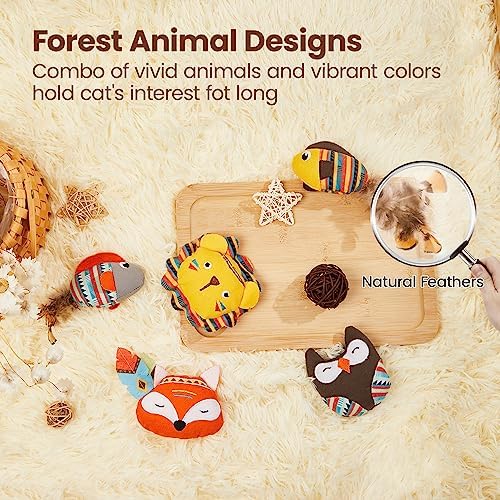 Potaroma Cat Toys Jungle Animals, 5 Pack Bite Resistant Catnip Toys, Interactive Cat Kicker Toys for Indoor Cats, Promotes Kitten Exercise, 3.5 Inches