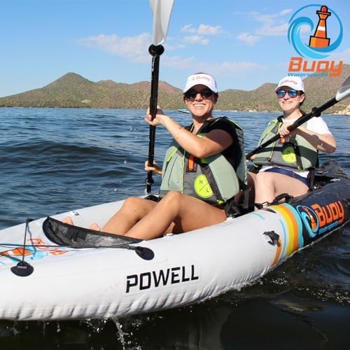 Explore the serene waters with ease and style aboard the Buoy Watersports Powell Tandem Kayak, your perfect companion for aquatic adventures!