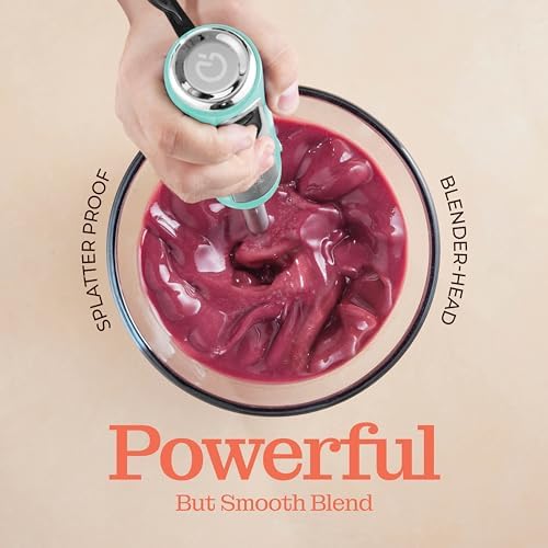 Powerful Immersion Blender, Electric Hand Blender 500 Watt with Turbo Mode, Detachable Base. Handheld Kitchen Blender Stick for Soup, Smoothie, Puree, Baby Food, 304 Stainless Steel Blades (Aqua)