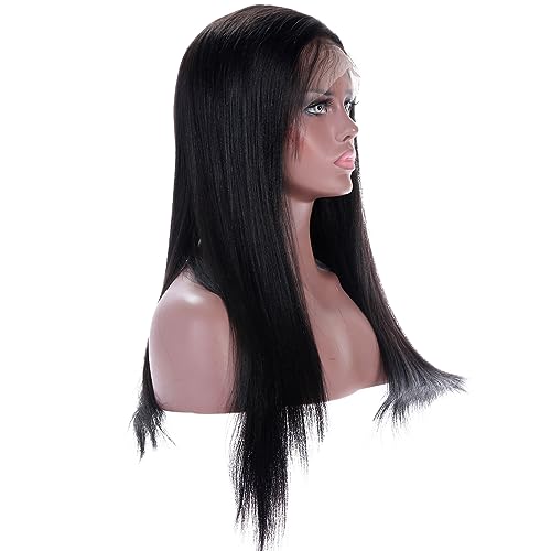 premier Light Yaki Straight 360 Lace Front Wigs Human Hair Pre Plucked Natural Hairline with Baby Hair 150% Density Brazilian Remy Human Hair 360 Yaki Lace Frontal Wigs for Black Women 14 Inches