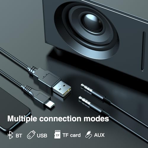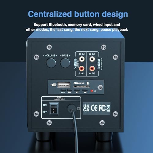 【Easy Connection】 This powered speaker supports SD/USB/Bluetooth/3.5mm input and switchable by button, suitable for desktop/laptop/PC/PS/Xbox/TV/Android phone/iPhone/iPad/Tablet/DVD/Music Player, place on your bookshelf/Computer desktop/TV stand/workbench, so that your treasured music can accompany you at any time