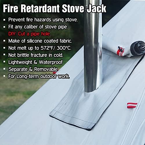 There is a window and a fire retardant stove jack for stove pipe. Flame retardant fabric can protect camper from skin burn.