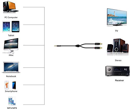 Primeda Audiophile Audio Cable Stereo 3.5mm Male to 2 RCA Male Red for Smartphone, MP3,CD, Tablets, Speakers,Home Theater,HDTV (Right Angle 3.5mm (9 Feet))