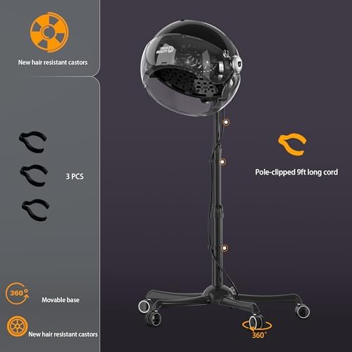 ✅WITH IONIC GENERATOR – Floor standing ionic hair dryer features a built in ionic generator that emits millions of negative ions. These ions help to reduce drying time, minimize static frizz while simultaneously conditioning your hair giving them a silky smooth and voluminous texture